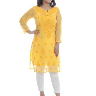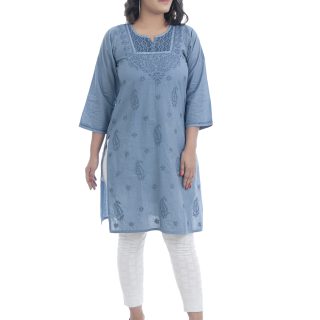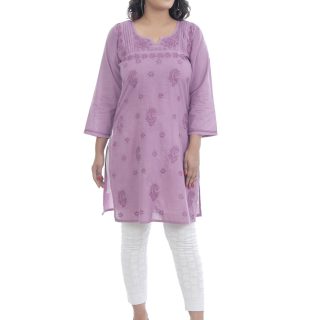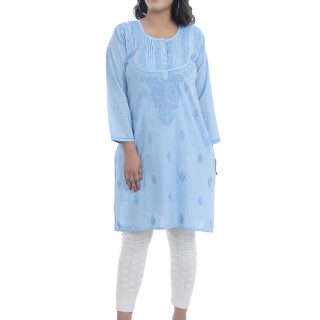 Care Instructions : Wash With Like Colour Shade Dry The Coloured Clothes , Neck Detail : ROUND Neck Knee Length & Heavy Chikan Embroidery work, Sleeve: 3/4Â Regular Sleeve , Length: 37-44 inches