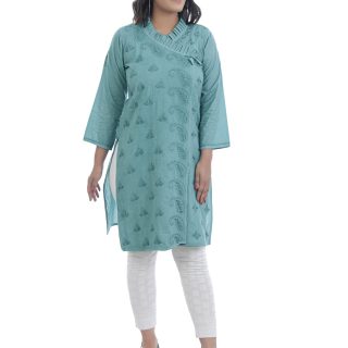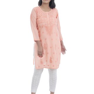 Care Instructions : Wash With Like Colour Shade , White Colour Products Are Dyable As Per Your Choice Available On Preorder , Neck Detail : ROUND Neck Knee Length & Heavy Chikan Embroidery work, Sleeve: 3/4 Regular Sleeve , Length: 37-44 inches
