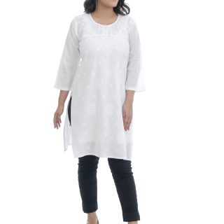 Care Instructions : Wash With Like Colour Shade Dry The Coloured Clothes , White Colour Products Are Dyable As Per Your Choice Available On Preorder , Neck Detail : ROUND Neck Knee Length & Heavy Chikan Embroidery work, Sleeve: 3/4 Regular Sleeve , Length: 37-44 inches